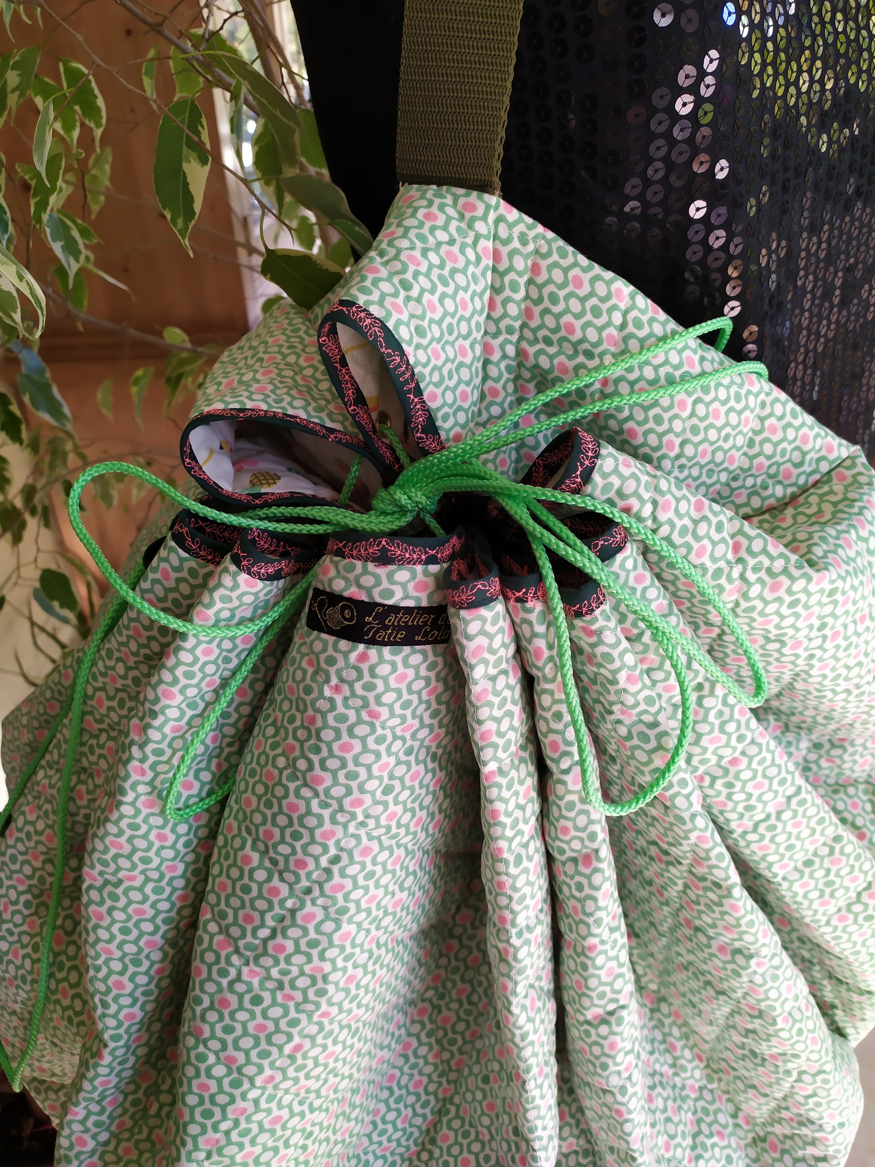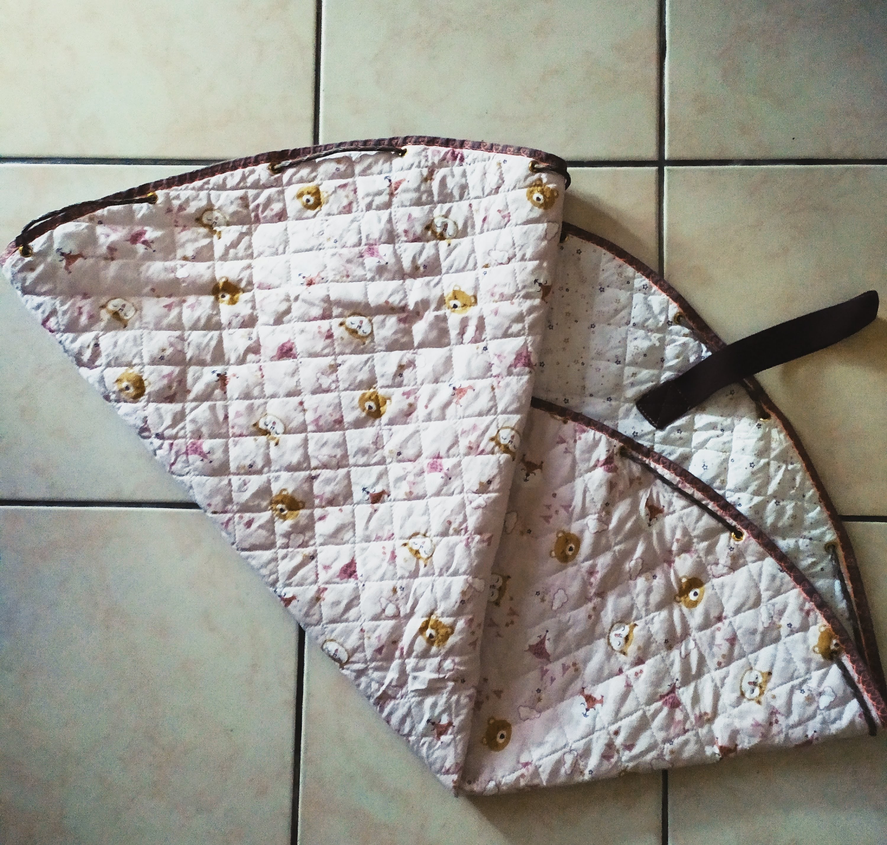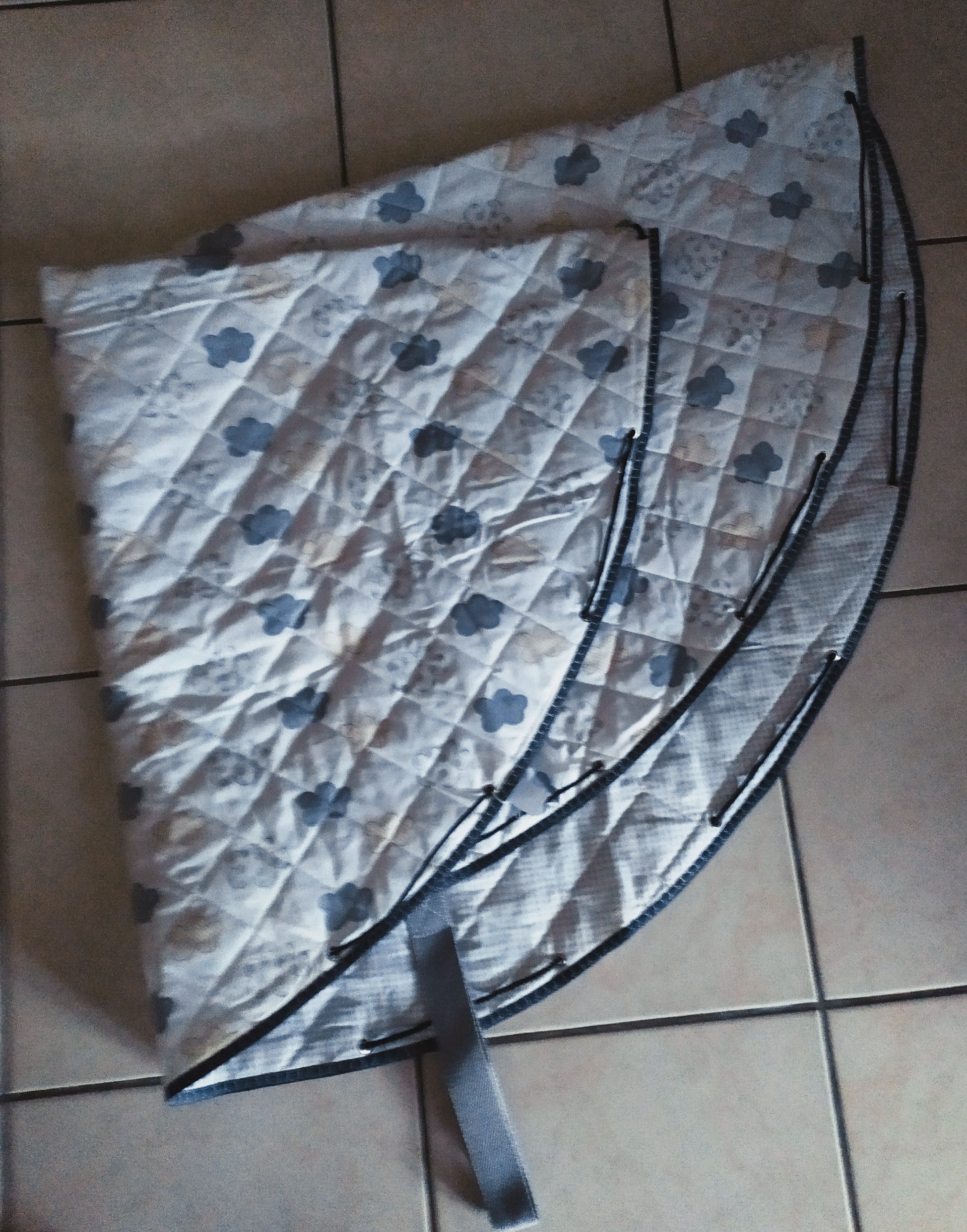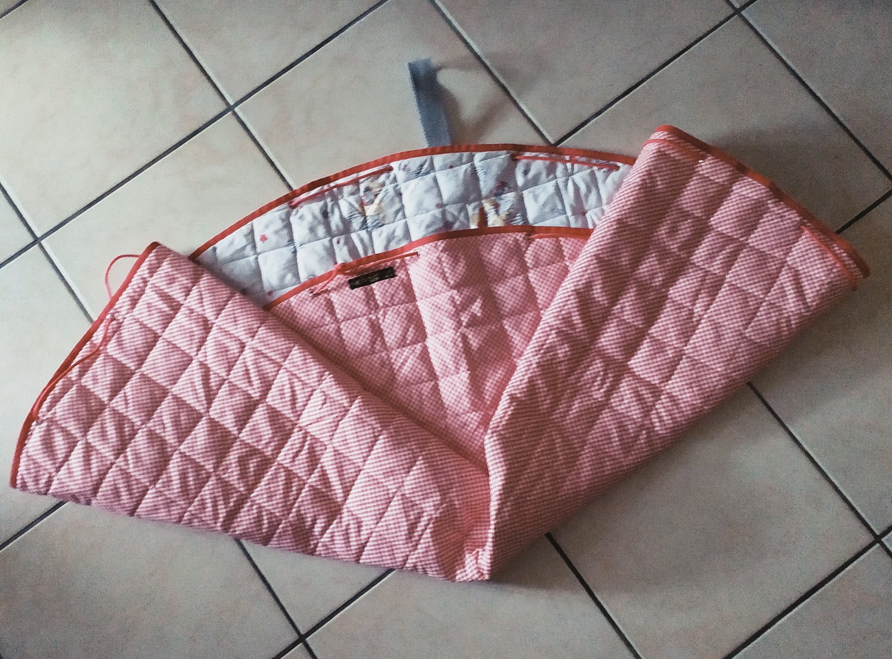 Tapis rond en coton matelassé, transformable en sac de transport pour les accessoires ou les jouets de bébé. Très utile pour déplacer bébé et ses affaires d’une pièce ou d’un lieu à un autre. Lavable en machine.