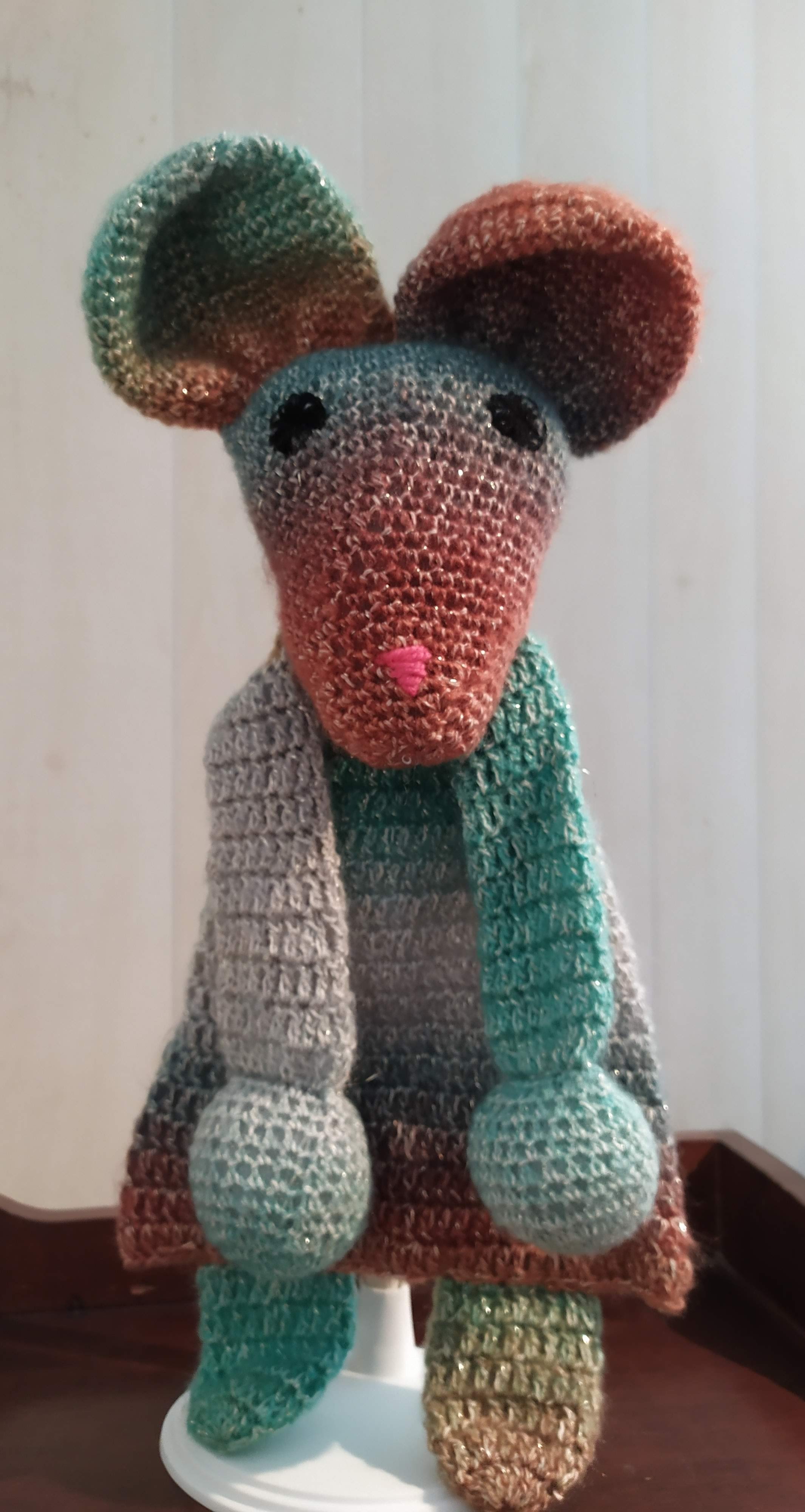 Animaux crochetés avec des fils tout doux et tout chaud (75% laine) Différents animaux proposés. Taille approximative de 35 cm à 45 cm selon les modèles. Lavable en machine.
