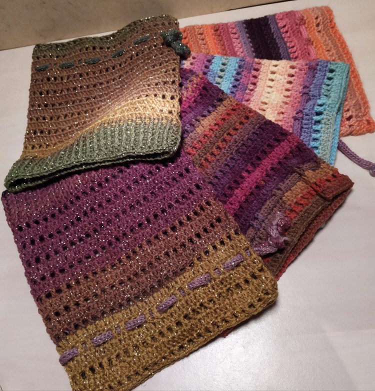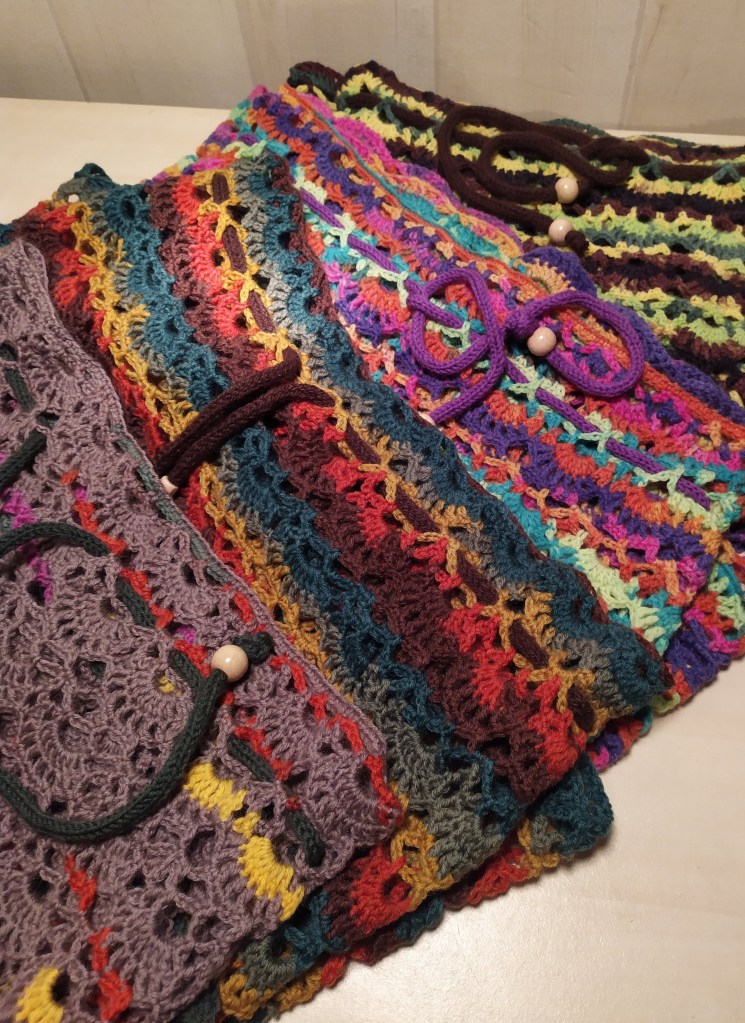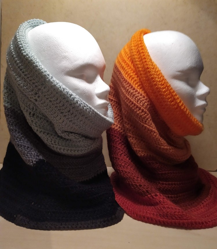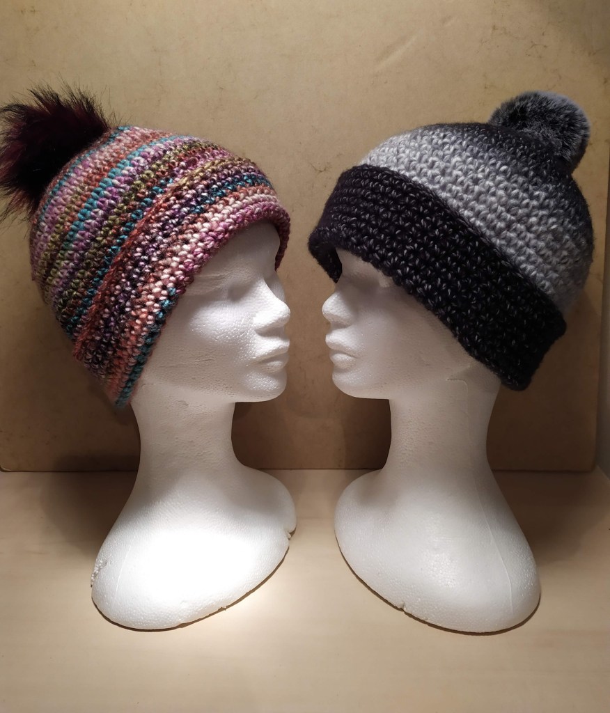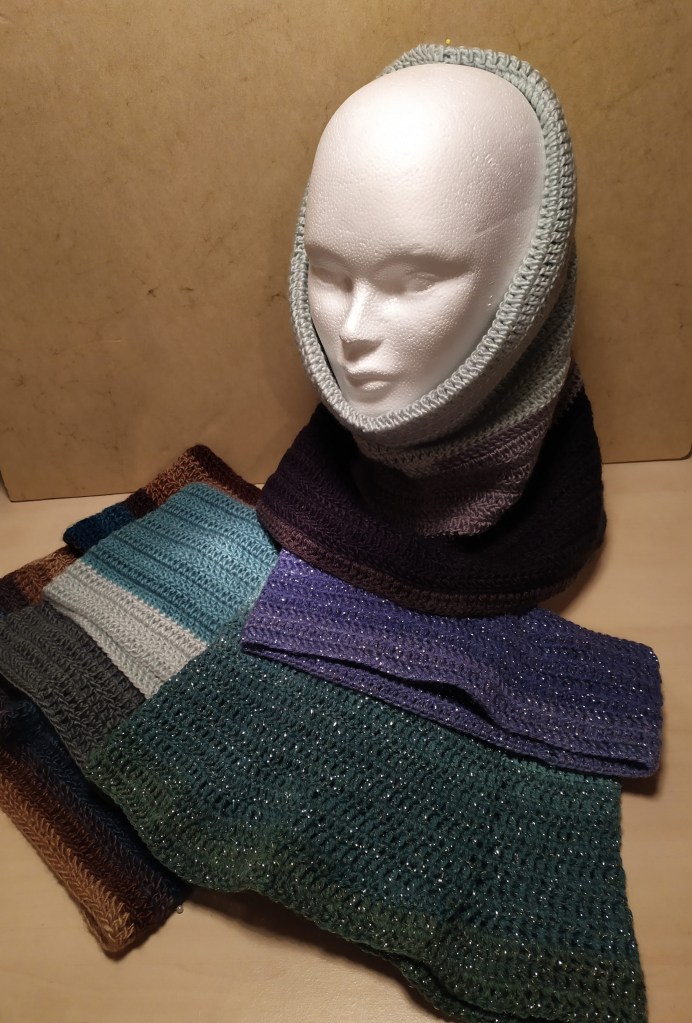 Mitaines, bonnets, tours de cou…accessoires pour se protéger du froid, crochetés à la main et qui brillent de mille couleurs.