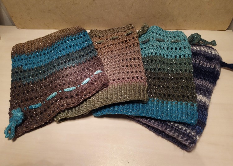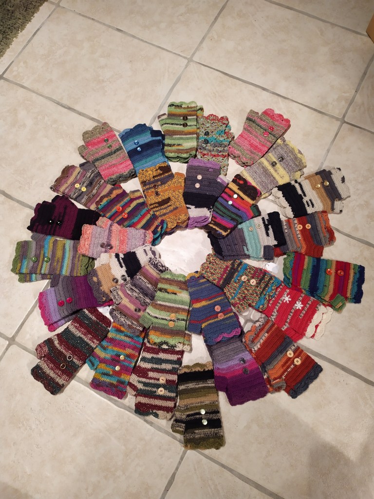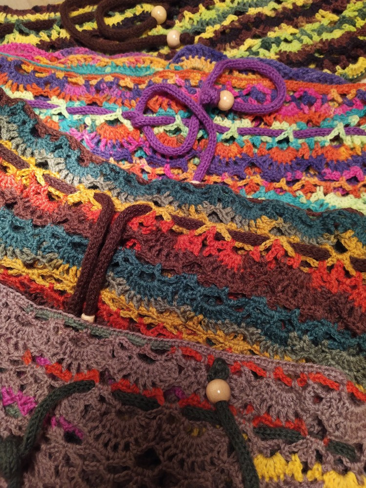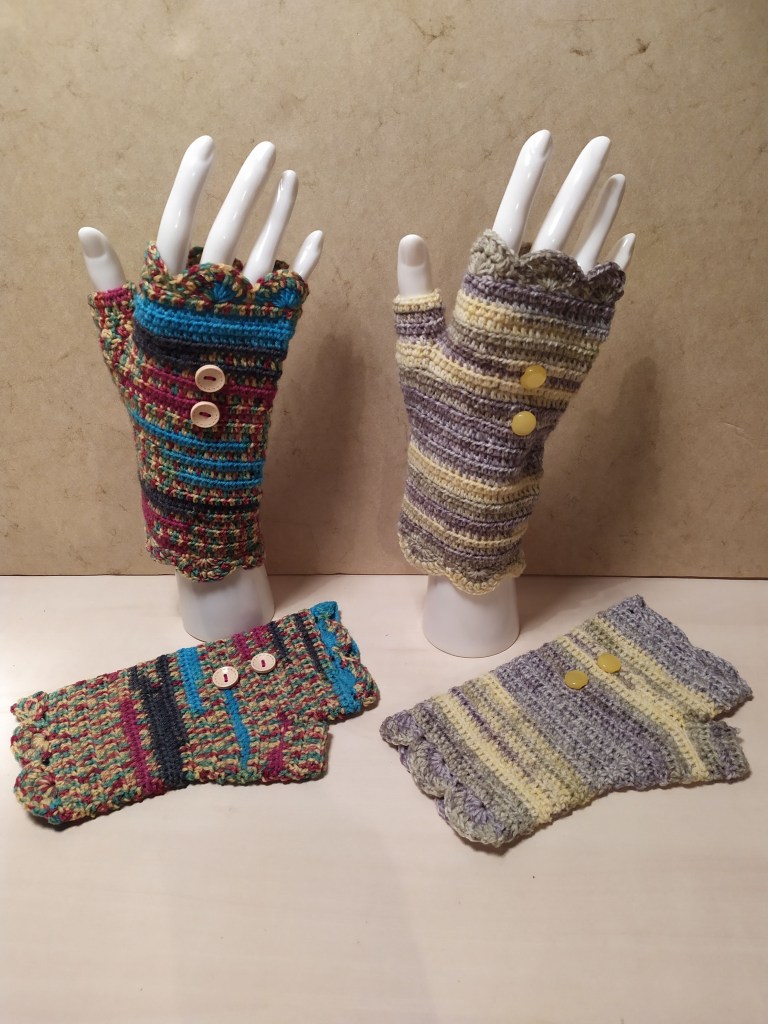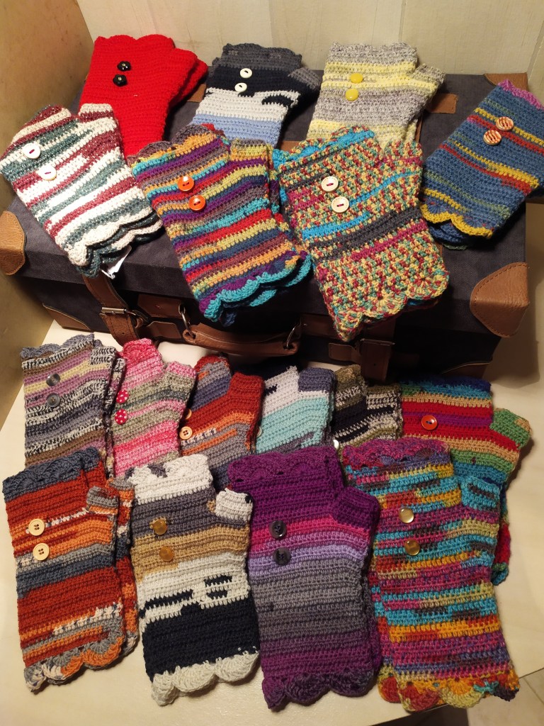 Mitaines, bonnets, tours de cou…accessoires pour se protéger du froid, crochetés à la main et qui brillent de mille couleurs.
