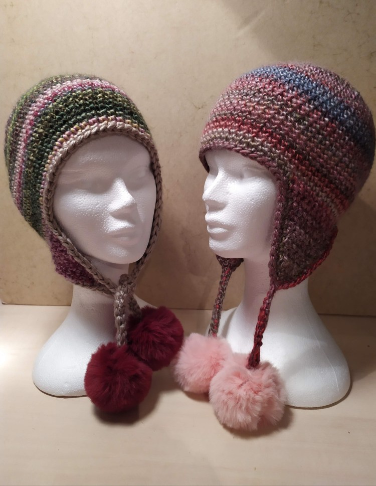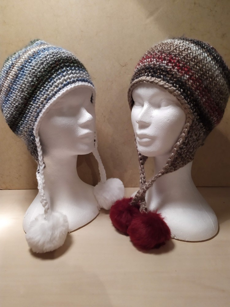 Bonnets avec pompon, style péruvien ou transformable en tour de cou, différents styles mais modèles uniques.